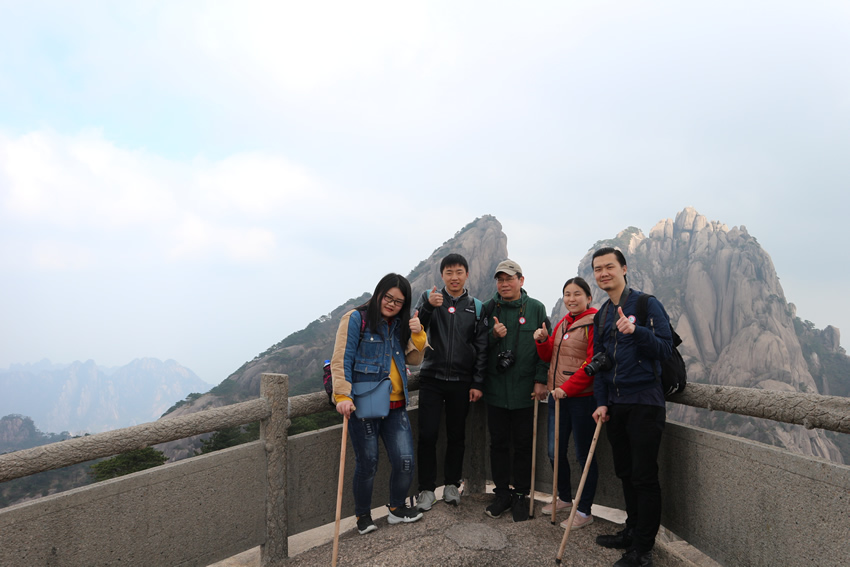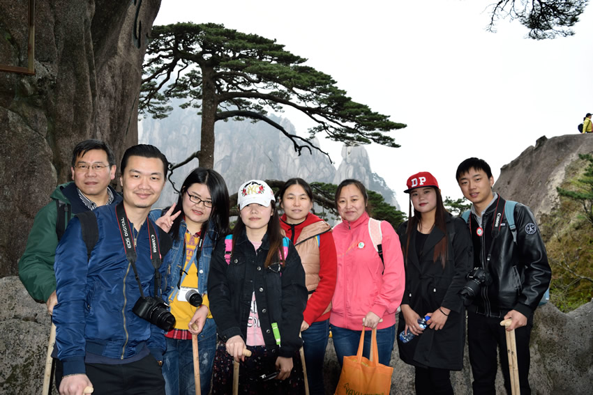 感謝公司領導給予的福利,這一路上,大家褪去工作與煩惱,歡聲笑語不斷,相處融洽,整個旅程變得不那么枯燥、疲乏。旅游是工作與休閑之間很好的銜接和轉換,一次身心的放松有助于集聚力量投入到日后的工作中,希望同事們和公司一起進步,越來越好,屢創佳績。黃山的美景實在太多,北海景區如獅子峰、散花塢、夢筆生花、筆架峰、姜太公釣魚等景點;始信峰如豎情、臥龍、黑虎、連理、探海等奇松,還無法全部游覽到,有緣再會。