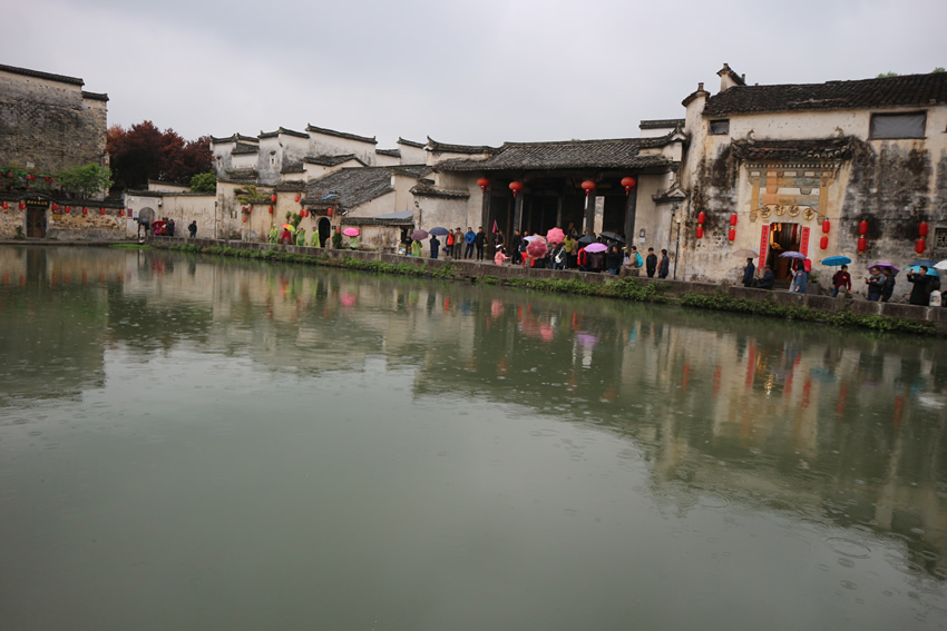 4月中旬,公司為員工組織了三天兩晚的春游活動。第一天上午,我們由武漢站乘動車前往黃山市,下午到達黃山北站后在導游的帶領下乘坐旅游大巴前往第一個目的地:安徽黟縣特色小鎮——宏村。宏村是國家首批12個歷史文化名村之一,是一座仿生學建筑牛形水系的古村落,這里依山傍水,美不勝收??上?/span>天公不作美,當天的宏村下起了小雨,拍照略有不便,不過,大家穿著雨衣漫步在小鎮里也別有一番風味。我們游覽了南湖畫橋、南湖書院、月沼、樹人堂、敬愛堂、敬修堂等具有濃郁徽州風格的古民宅,河水清澈見底,小巷狹長幽深,都散發出一種安逸靜謐。看著這樣的鄉村景色,恍如步入唐詩宋詞的意境,古代田園詩的許多名句在這里找到了現實的寫照,“無邊細雨濕春泥,隔霧時聞小鳥啼;楊柳含顰桃帶笑,一邊吟過畫橋西”。除了美景外,還有許多特色美食,如毛豆腐、蟹殼黃燒餅,在景區里隨處可見。天色漸晚,雨越下越大,匆匆繞到村口便前往住處,一路上看到了很多田園憶古風的“店家”,我們入住的聚緣軒客棧內里布置也是古香古色,很新鮮的體驗。晚上,大家吃過晚飯后,又感受了一下宏村的夜景,還逛了一些特色小店。第二天離開宏村時,天氣晴朗,寧靜優美,還有男男女女在村邊作畫,不禁感慨,宏村不愧為畫里鄉村。